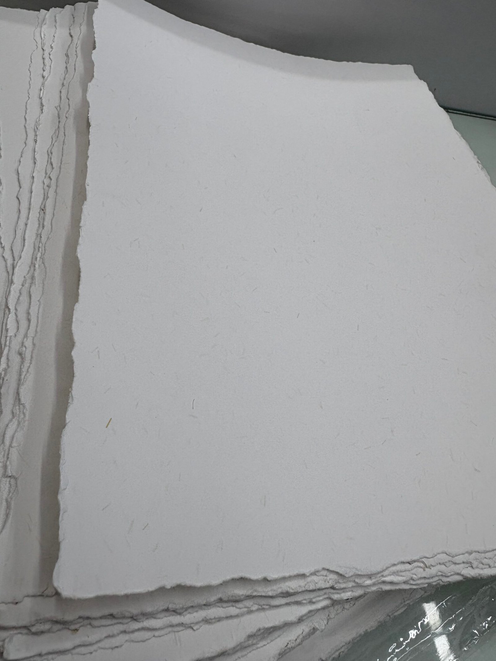 الورق القطني فاخر المصنوع يدويا من القطن بنسبة 100% باللون الأبيض , الأطراف الخشنة العشوائية تعطي جمالية وفخامة هذا الورق